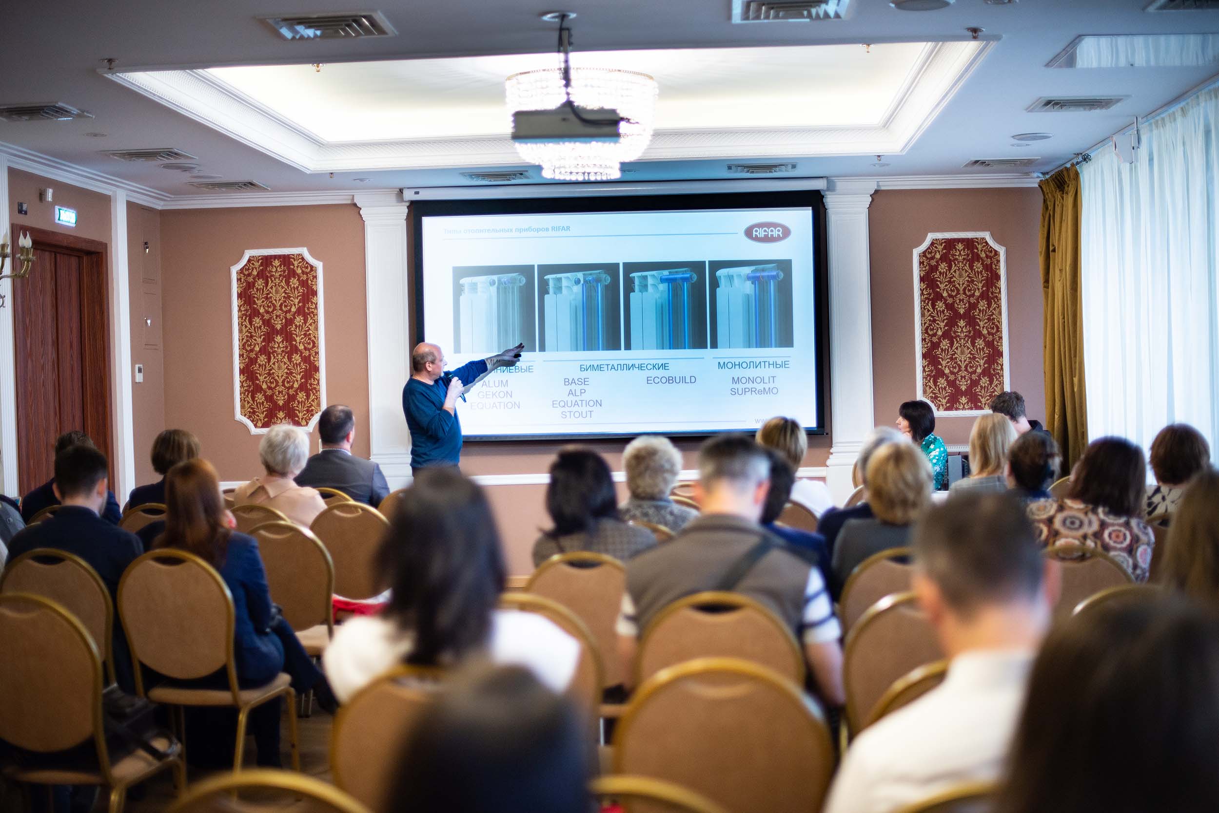 Компания «РИФАР» уже не первый раз выступает одним из партнеров этого мероприятия. В рамках выставки мы презентовали продукцию завода: алюминиевые секционные и биметаллические монолитные радиаторы. А во время конференции руководитель отдела маркетинга компании «РИФАР» Аркадий Емельянов подробно рассказал о новинках продукции: