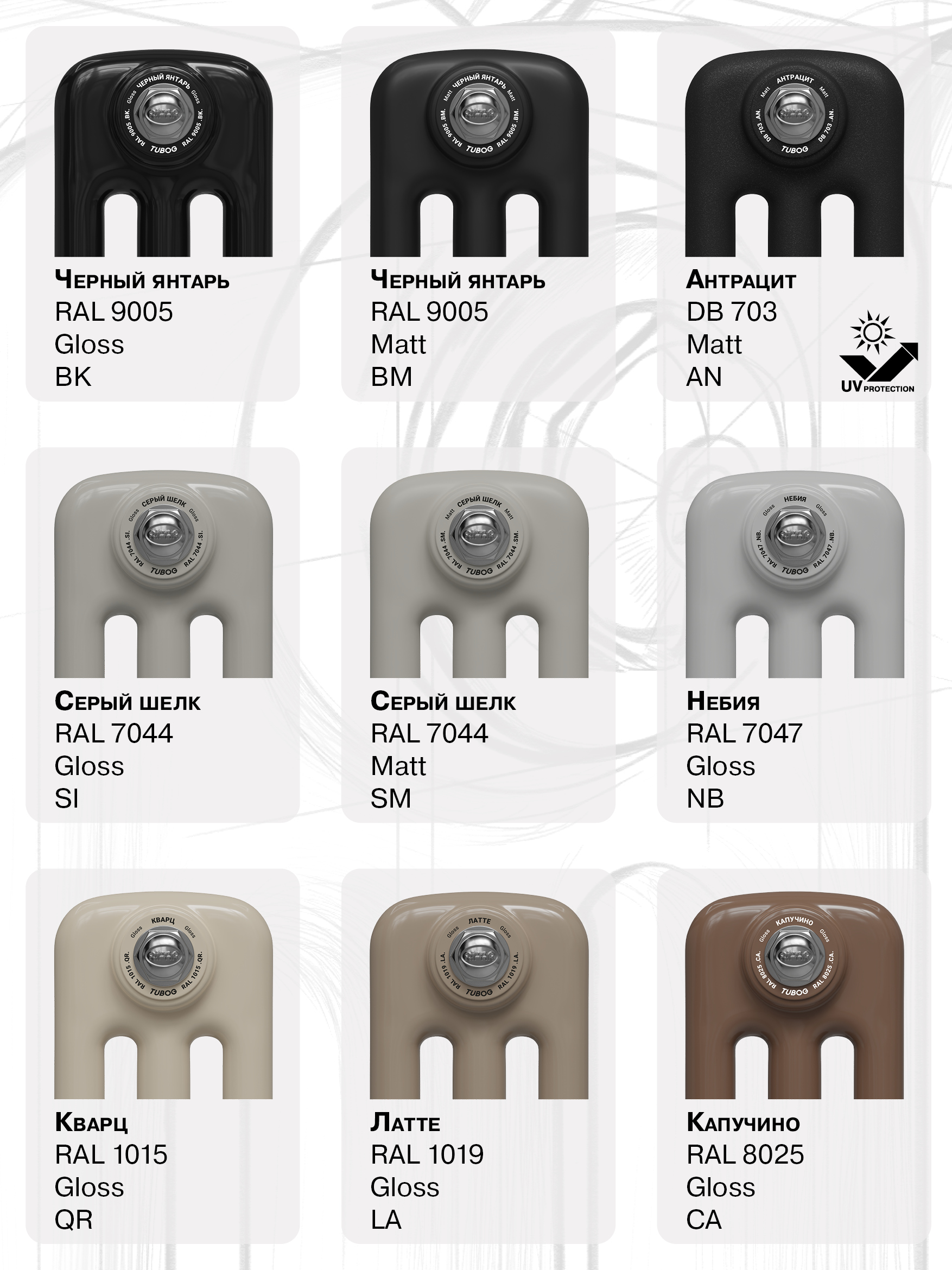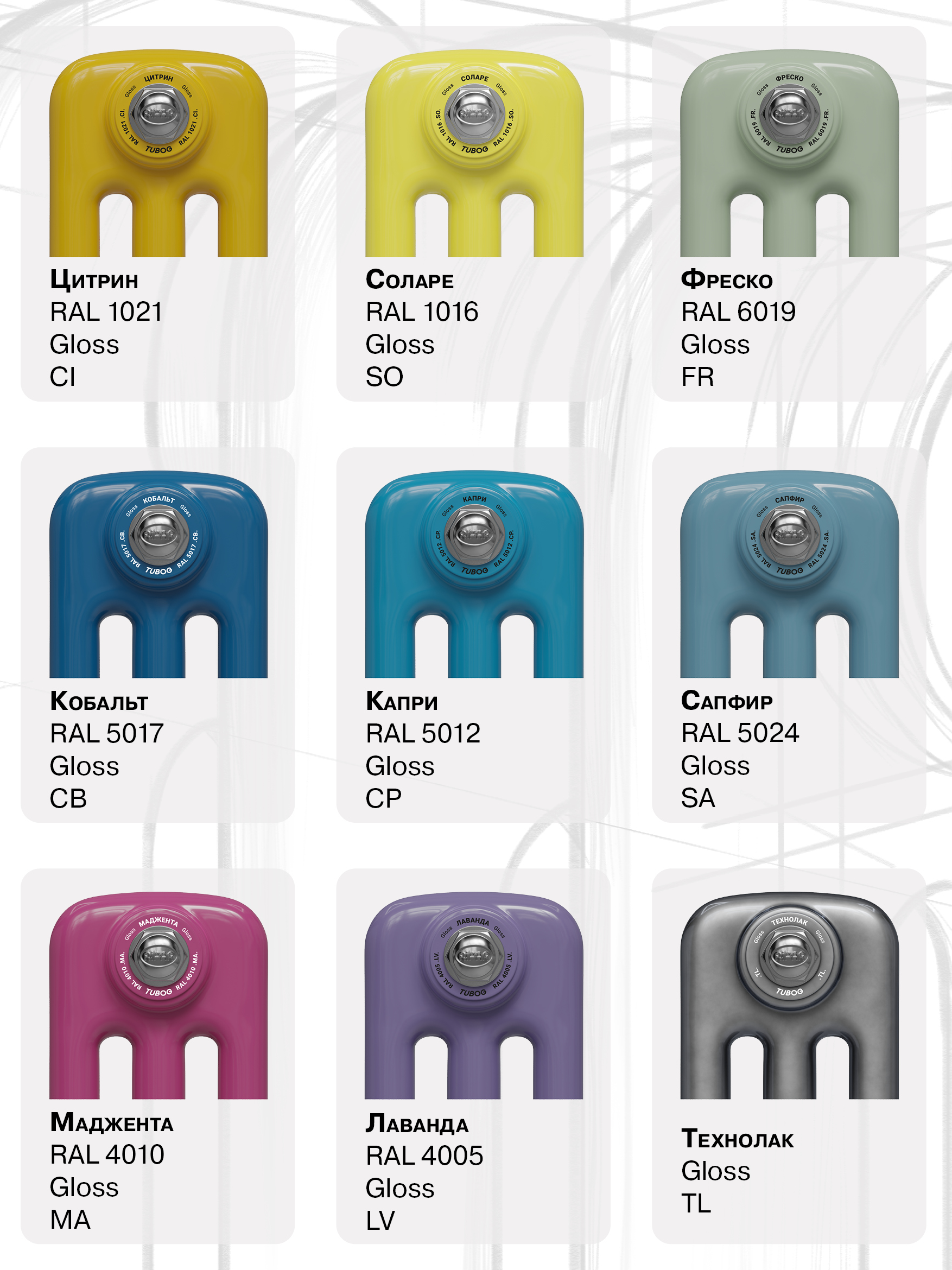 Представляем вам расширенную цветовую палитру для радиаторов TUBOG. Новая цветовая палитра включает в себя 37 ярких и насыщенных оттенков для окраски радиаторов порошковыми эмалями. Самым важным аспектом этого события можно назвать то, что это теперь стандартные цвета, которые выбраны в качестве штатной цветовой гаммы. Это значит время ожидания своего TUBOG существенно снизилось!Теперь пользователям, инженерам и дизайнерам будет проще создавать индивидуальные интерьеры, где больше не нужно прятать приборы отопления. Наоборот, теперь можно сделать из них стильные и запоминающиеся элементы интерьера.