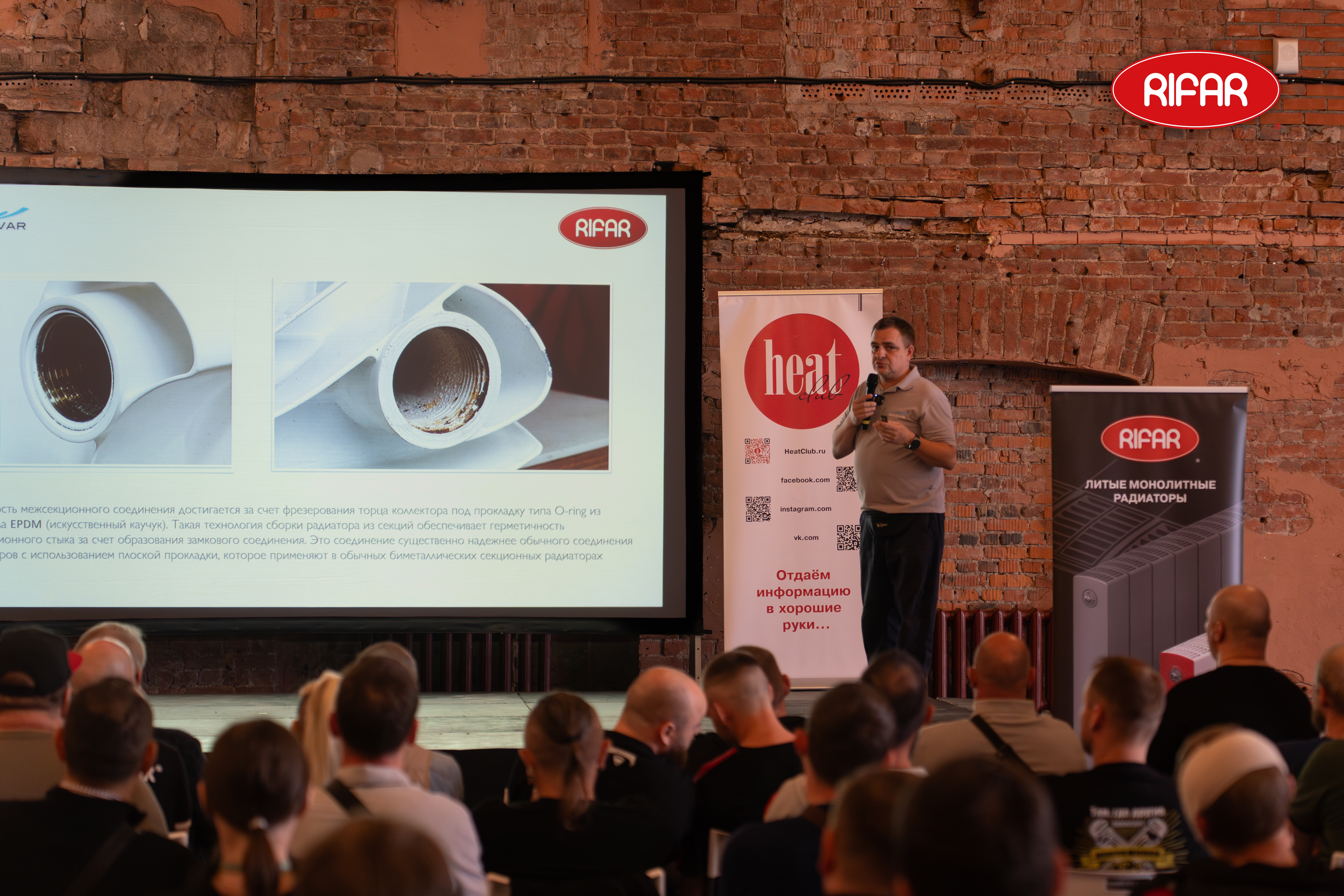 17 июня 2025, впервые в Санкт-Петербурге, на территории кластера Севкабельпорт, в Брусницын Холл, компания RIFAR совместно с официальным дилером - компанией Хогарт Нева, провела уникальный форум для специалистов по монтажу и проектированию систем отопления - RIFAR PROFi.