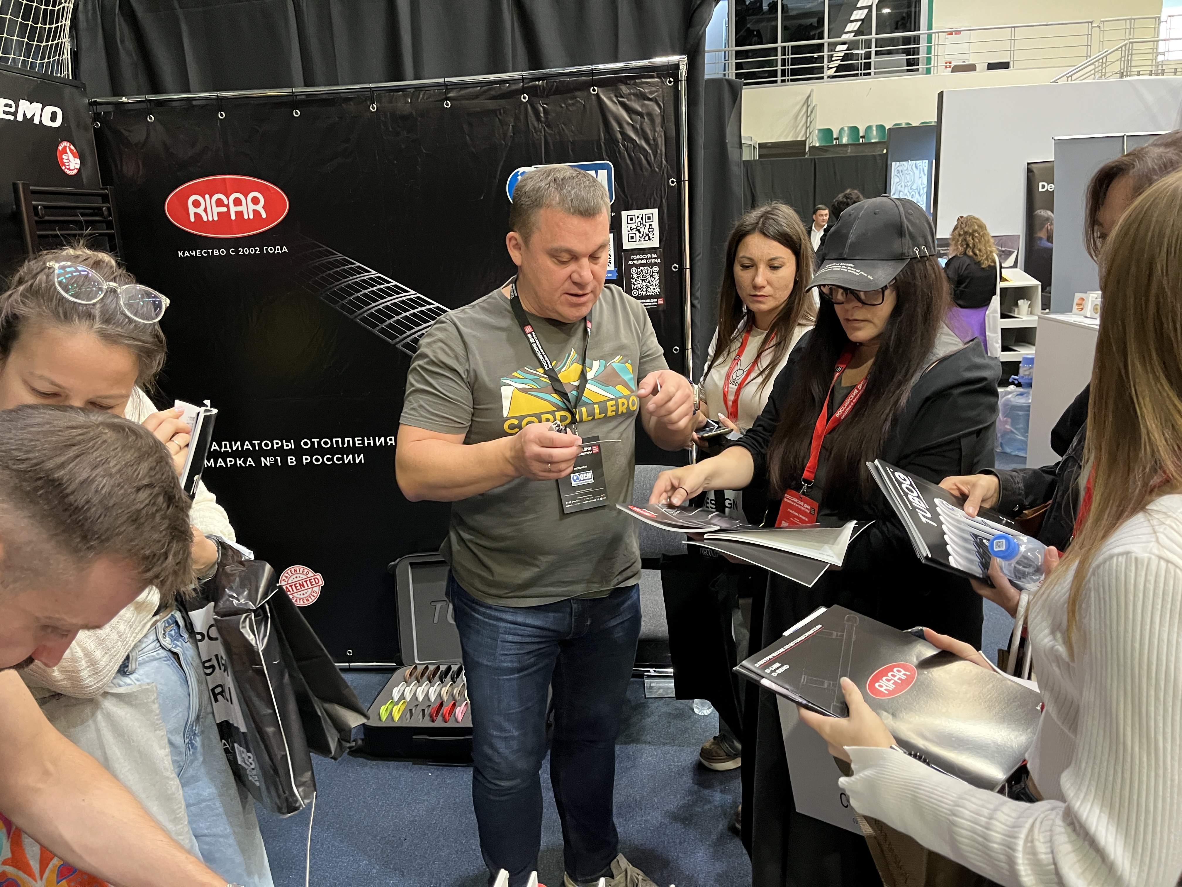 С 10 по 12 сентября 2025 года в Казани состоялось очередное мероприятие проекта РОССИЙСКИЕ ДНИ ДИЗАЙНА. Компания RIFAR традиционно приняла участие в данном мероприятии, совместно с фирменным центром продаж в Республике Татарстан – компанией СтройСантехМонтаж. (ВОК-Челны).В настоящее время продукция RIFAR активно используется во многих проектах дизайнеров интерьера, поэтому большинство вопросов было по технической части и эксплуатации. Специалисты компании провели более ста пятидесяти консультаций как для профессиональных дизайнеров интерьера, так и для студентов профильных учебных заведений, только начинающих этот путь. Посетители стенда узнали много новой и полезной информации о технологиях производства и контроля качества, цветовой палитре, соблюдении гарантийных обязательств и новинках завода.